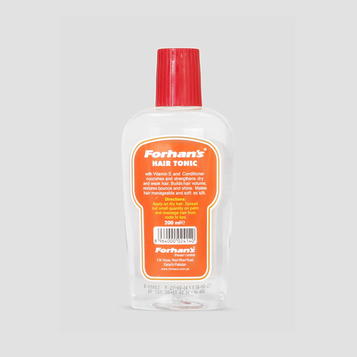 Forhan’s hair tonic enhanced with vitamin E and conditioner nourishes and strengthens the dry and weak hair. Builds hair volume, restores bounce and shine. Makes hair manageable soft and silky.
